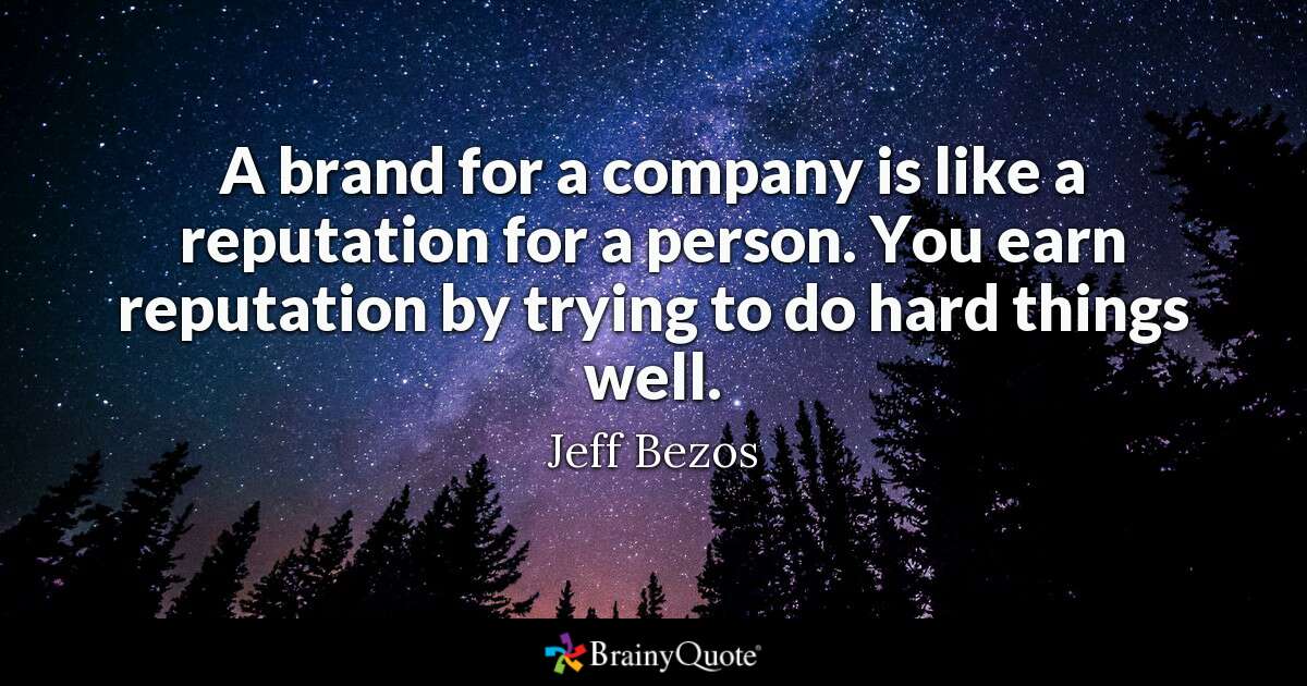 As you can see from the quote above made by the world's richest man, Jezz Bezos, he declares....."A brand for a company is like a reputation for a person. You earn reputation by trying to hard things well."